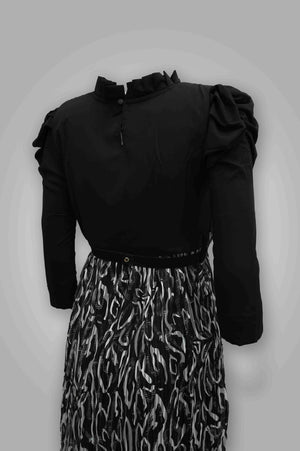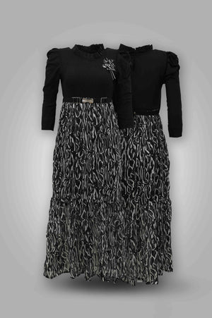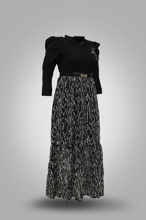 Description : Soft and stylish black and white printed western dress. Perfect for parties, festivals, or casual wear